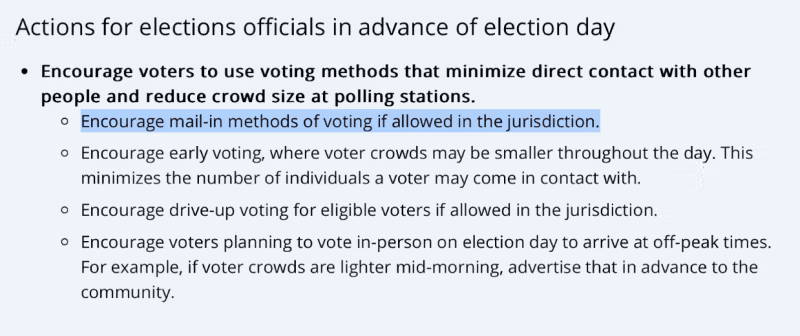 Noch am selben Tag besuchte jemand die Seite der CDC-Website und fügte hinzu, dass gute Hygiene darin besteht, die Briefwahl voranzutreiben. Nur wir kennt Dies dank Archive.org und der Überprüfung der täglichen Zeitleiste.