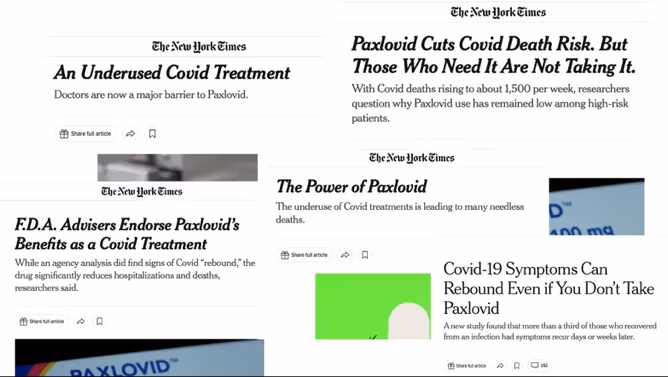 Die New York TimesBeispielsweise brachte es während der Pandemie mehrere Geschichten über die „Kraft von Paxlovid“, ermutigte mehr Menschen zur Einnahme des Medikaments und kritisierte dessen unzureichenden Gebrauch.