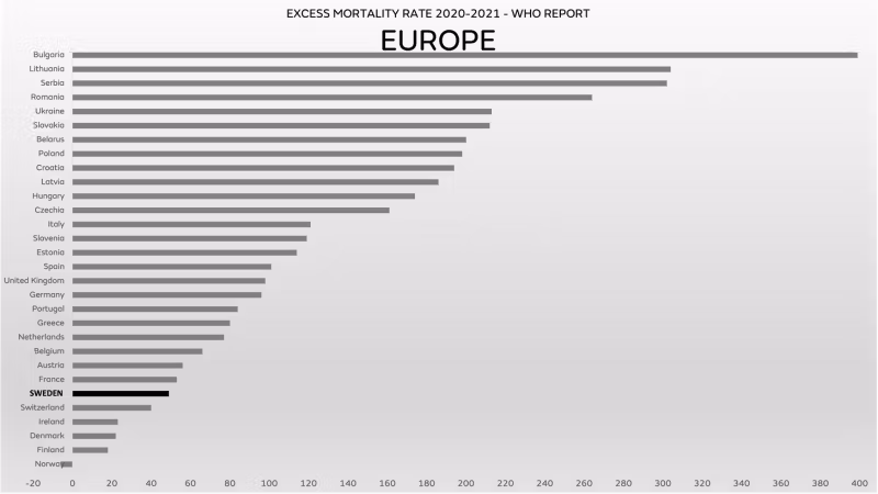 Der WHO-Bericht enthält viele aufschlussreiche Statistiken aus den ersten beiden Jahren der Pandemie, die zeigen, dass der schwedische Ansatz zweifellos der richtige war; wieder einmal im Widerspruch zu dem von Experten abgeleiteten „Konsens“, der für endlose Einschränkungen des normalen Lebens plädiert.